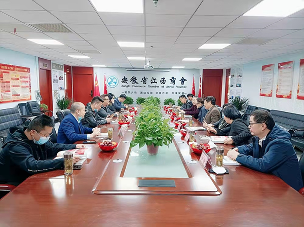 2022年4月3日,安徽省人大常委会原副主任吴昌期、安徽省政协原副主席王鹤龄、安徽省军区原副司令员刘正宗一行莅临安徽省江西商会视察指导,安徽省江苏商会党支部书记刘力、安徽省众城置业发展有限公司董事长吴锐等参加。安徽省江西商会党支部书记、会长杨建田,监事会主席罗苏云,常务副会长朱文亮,副会长俞航,秘书长李国金等热情接待来访。