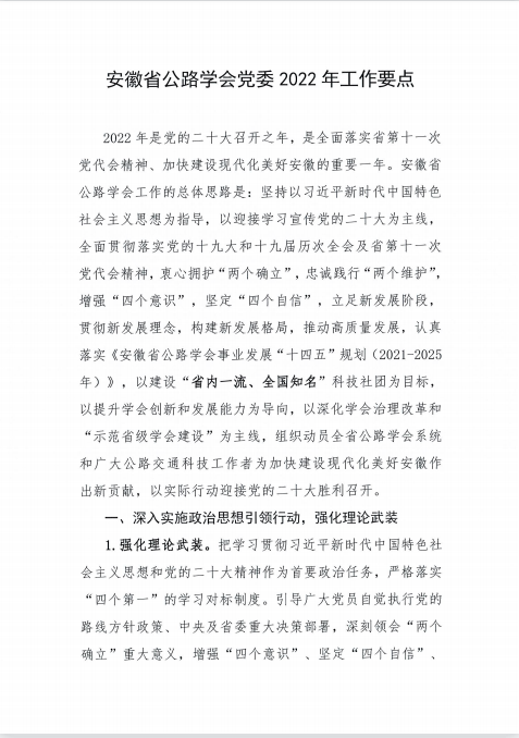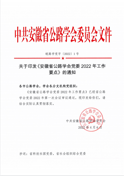 关于印发《安徽省公路学会党委2021年工作要点》的通知