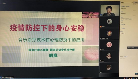 4月10日上午10时许,研究院特邀音乐治疗师胡岚教授带领同学们在线上进行了一次音乐放松活动。胡岚老师首先从生理角度讲述了音乐对人们心理情绪的调节作用,接下来随着音乐声缓缓响起,同学们慢慢闭上眼睛,在老师指导语的引领下,进入空虚缥缈的音乐世界。超凡脱俗的音色带我们走进心底深处、放空自己,同学们沉浸在美妙的旋律中,享受心灵的片刻宁静... ...