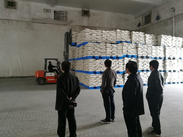 图为行业主管部门领导带领协会人员到应急定点加工企业督查应急保供情况