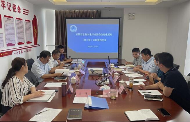 2022年7月12日,安徽省水利水电行业协会与中水三立数据技术股份有限公司成功举行信息化采购(第二批)合同签约仪式,协会会长单文昌、秘书长、副秘书长以及中水三立公司代表出席了签约仪式。