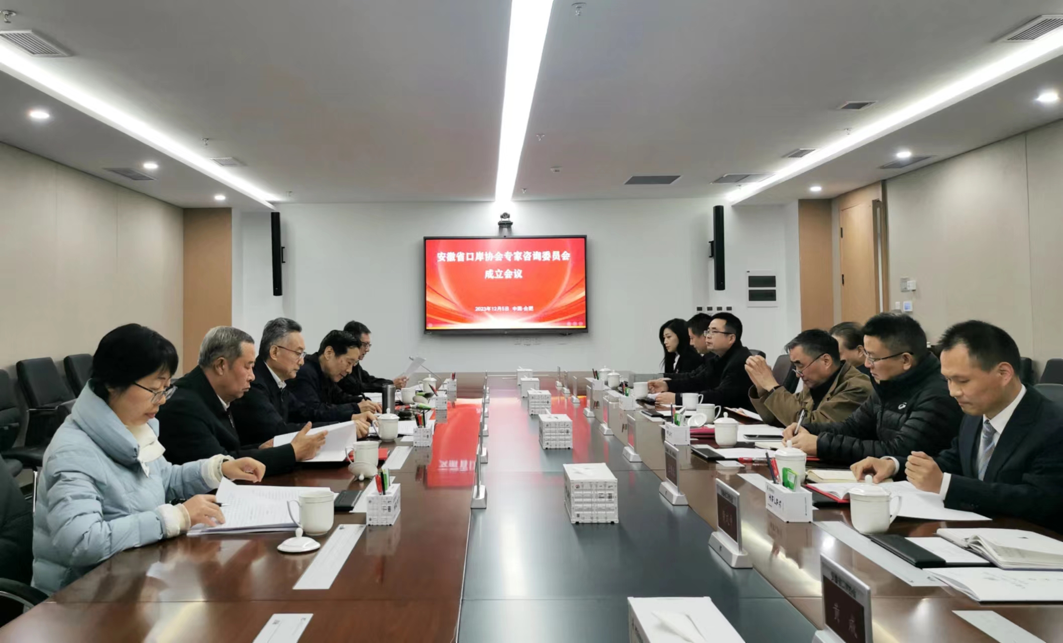 12月5日,安徽省口岸协会专家咨询委员会成立会议在合肥国际陆港成功召开。省商务厅二级巡视员徐滋跃出席会议并讲话,省商务厅人教处处长益辉到会指导。张武扬、贾江、王晓阳、何光、陈锋、王宝德、王修众等首批专家委员代表参加会议。协会执行会长兼秘书长吴洪波主持会议。