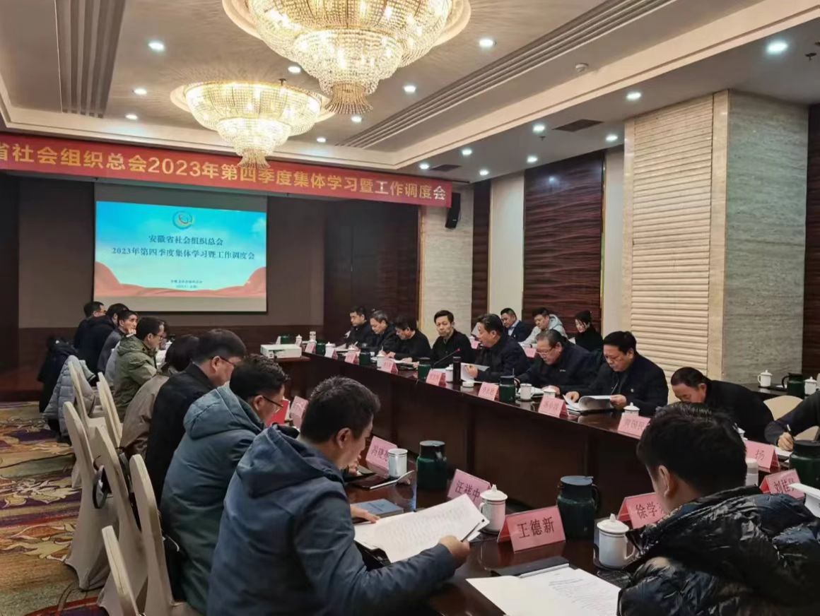 2024年1月4日下午,省社会组织总会召开第四季度集体学习暨工作调度会,会议传达了1月3日省委书记韩俊主持召开的省委常委会会议精神,集体学习了省委办公厅、省政府办公厅《关于改革社会组织管理制度促进社会组织健康有序发展的实施意见》,审议了四届二次会员代表大会筹备方案和会议材料等。省社会组织总会会长贾宝明主持会议,省民政厅社会组织管理局领导到会指导。