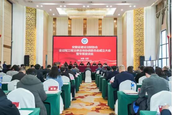 2023年12月30日,安徽省建设法制协会全过程工程法律咨询协调委员会成立大会暨专家座谈会在合肥顺利召开。