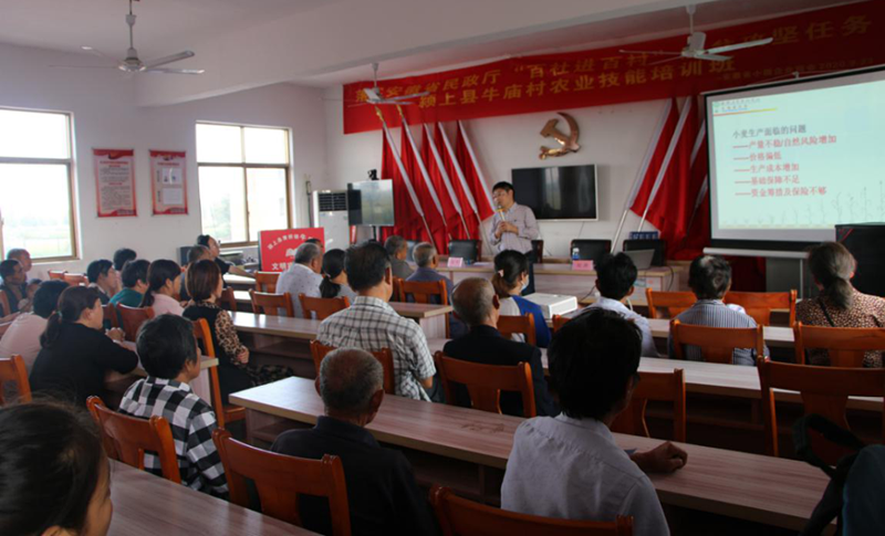 粮食为国之根本、民之命脉。在新的市场条件下,农民传统的种植观念和种植方式都发生了重大变化,农村对农业新技术的需求更加迫切。颍上县地处皖北,主要农作物是冬小麦,冬小麦的播种时间一般在9月的中下旬到10月上旬播种,现在正值冬小麦的播种,商会特别邀请安徽省农科院作物所刘泽博士一同前往牛庙村,给乡亲们讲授“如何科学种植小麦、提高小麦产量”,100多名村民参加了培训。