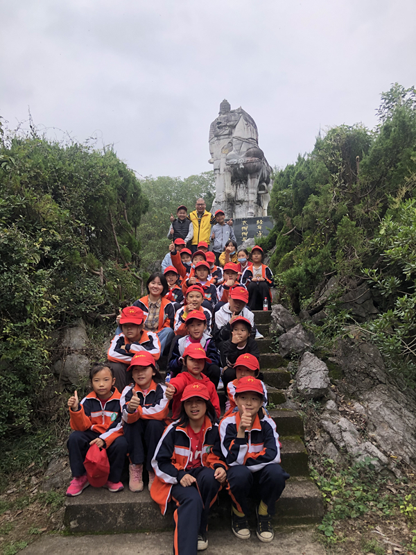 孩子们在池州市齐山岳飞雕像下留影